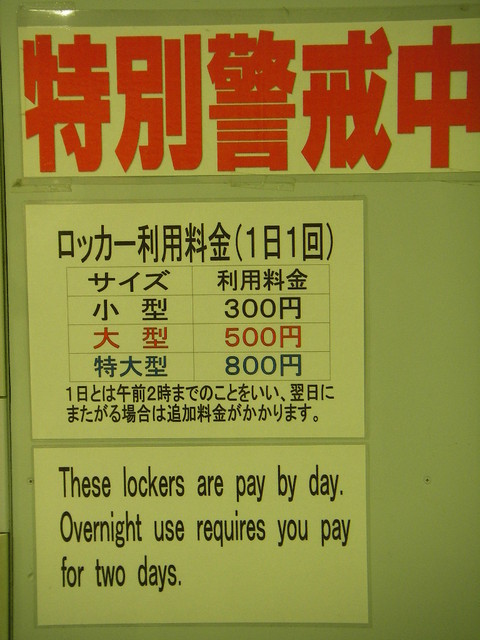 大型的就是中型的兩倍,所以如果行李箱想要塞進去大型的寄物櫃是可以的(指21吋的行李箱)