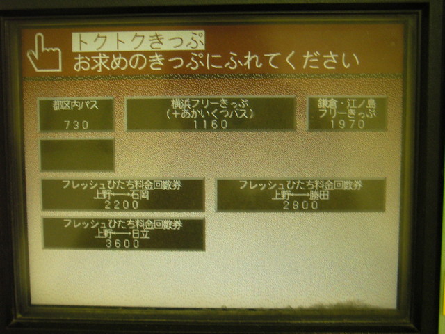 JR Ticket就是一般的單程票,pass在目前按鍵發光的Discount Ticket。之後畫面就跳入右邊的螢幕