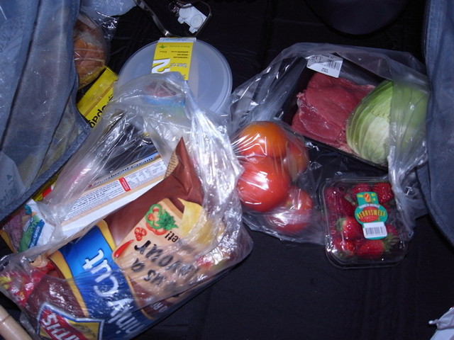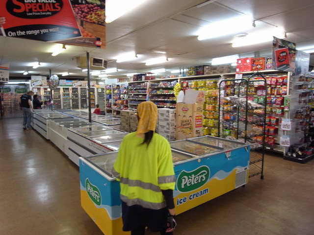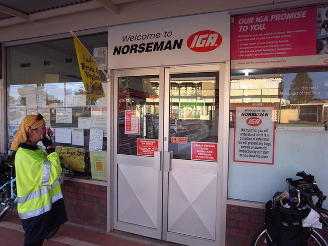 推開IGA的大門,所有結帳的顧客和店員看著我們怪異的行為,我們站在入口處看著琳瑯滿目的商品呆了五秒鐘,在此時文明的世界竟然是如此的美好,拿起超市的籃子讓慾望主宰了一切。水果、餅乾、巧克力、糖果、可樂、吐司、洋芋片、牛排、蔬菜...。一切的一切就像是要在Norseman定居般。我將所有購買的東西能綁則綁、能塞則塞的放在得利卡的身上,搖搖晃晃的從鎮中心回到之前下榻過的Gateway Caravan Park。
