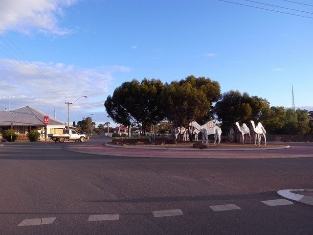 Norseman說起來其實沒有太大的觀光價值,城鎮的存在嚴格說起來最主要是為了給予準備進入、或已經離開納拉伯的車輛的補給站,以及支援著附近的礦坑運作。兩個月前會決定到Norseman來純粹就只是因為我們在outback的旅遊介紹中看見了這幾隻由金屬鋁製作而成的波紋駱駝,順便感受著內陸的荒漠。