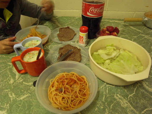 我沒多理睬妳,自顧自的處理起今天的晚餐,只希望已經被痠痛折磨一天的妳能夠多一點休息的時間。兩個人拿著裝滿熱湯的杯子互相慶祝著這一頓得來不易的晚餐,聊著今天路上的痛苦、談著未來的旅途、說著自己趕路的白癡想法。看得出來妳寧願去享受明天的休息、也不願意去思考後天再出發的痛苦。