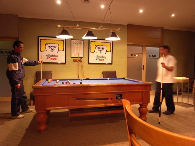 「我們有小費的唷!而且我們還在工作,你們已經沒機會再賺澳幣了。不用擔心啦!儘管享受就是囉~」Irene體貼用了一個足以讓我無法將錢包拿出的理由。我無法預料到在納拉伯的我們竟然有著如此不一樣的生活體驗,在古老的吧檯中喝著酒、玩著世界炙手可熱的電視遊樂器Wii、在依舊嶄新的撞球桌上大開殺戒、與臭氣相投的好友聊著瘋狂的旅行足跡。