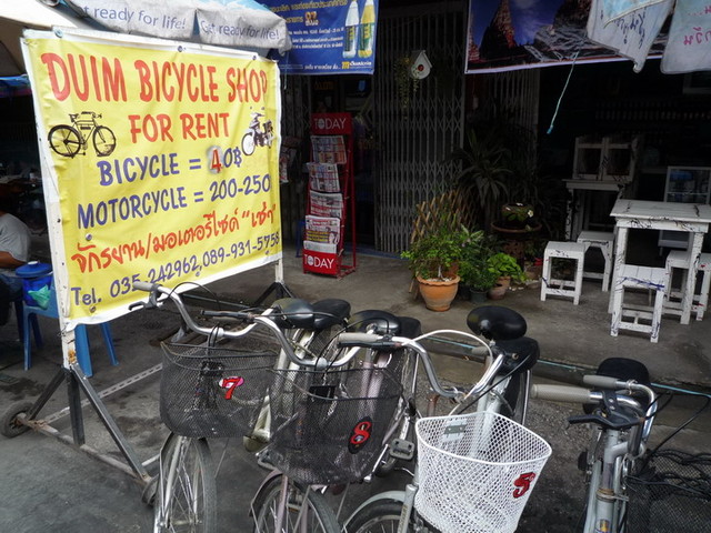 比較常見到的方式都是租借單車或是機車,而這些店家在大城的火車站正對面就能看見,價格從30~50銖不等;