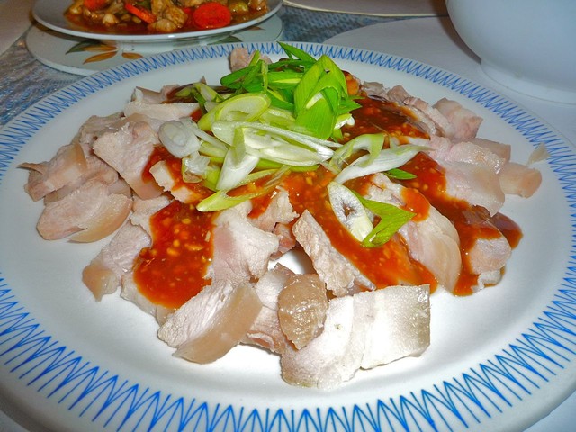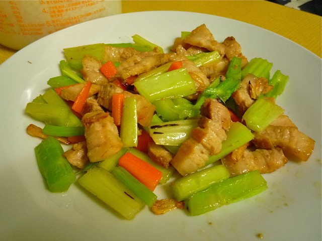 吃進嘴中充滿著蔬菜氣息的西洋芹搭配著小火煎到表面微焦的三層肉,