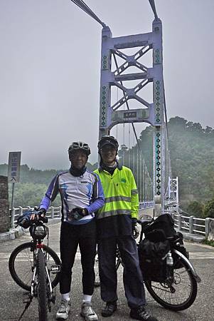我在羅浮橋前面正在喘氣喝水準備拿相機留念時,一位慈目眉善的車友順著坡滑到我旁邊。