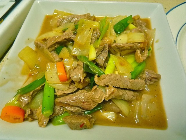 這道【蔥爆牛肉】是憑著之前在廚房觀察家母下廚的記憶給搞出來的。