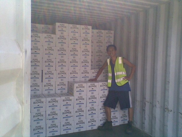 ![]() 將兩千四百箱的牛奶裝入貨櫃(這算爽缺) |