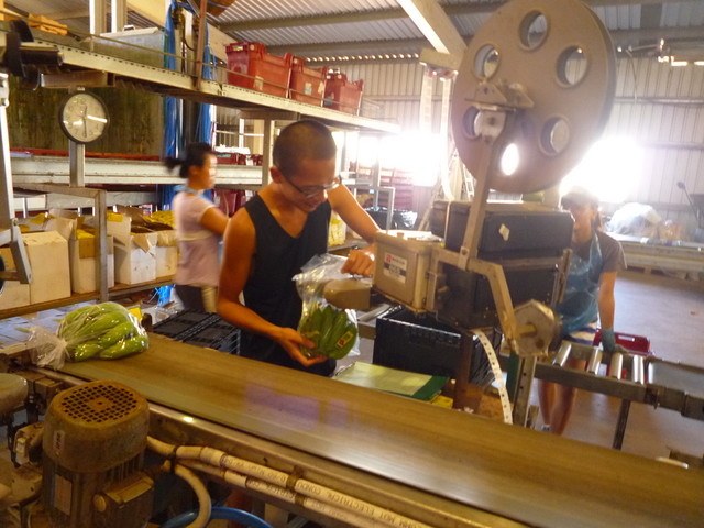 ![]() 在香蕉工廠內想辦法用最快又最兼顧品質的情況下將裝袋的香蕉封口 |
