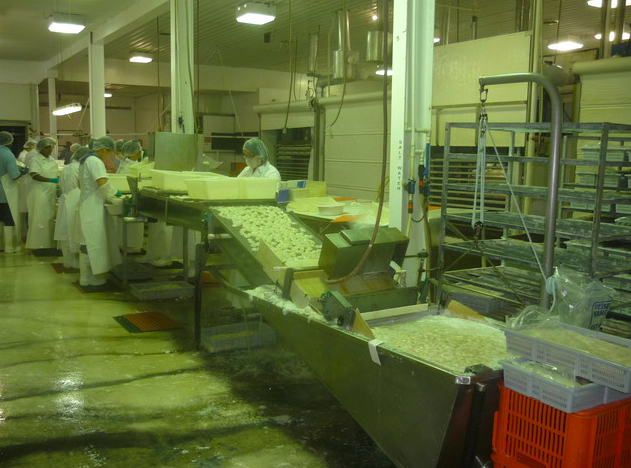 ![]() 在海鮮工廠內把以挑選完、裝盒的海鮮送至冷凍庫 |